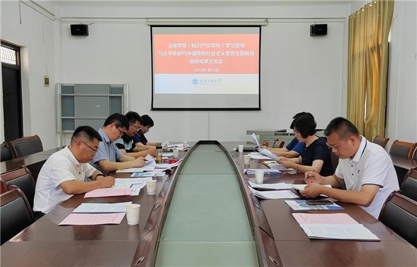 本网讯(通讯员 王祥礼)为深入开展学习贯彻习近平新时代中国特色社会主义思想主题教育,扎实推进调查研究取得实效,7月12日上午,38238a威尼斯欢迎你(知识产权学院)在311会议室召开学习贯彻习近平新时代中国特色社会主义思想主题教育调研成果交流会。学校主题教育第二联络组组长、校党委副书记郑丹凤,副组长、纪委副书记任兵,校团委副书记邓欢到会指导,学院领导班子成员参加会议。会议由学院党委书记杨克平主持。