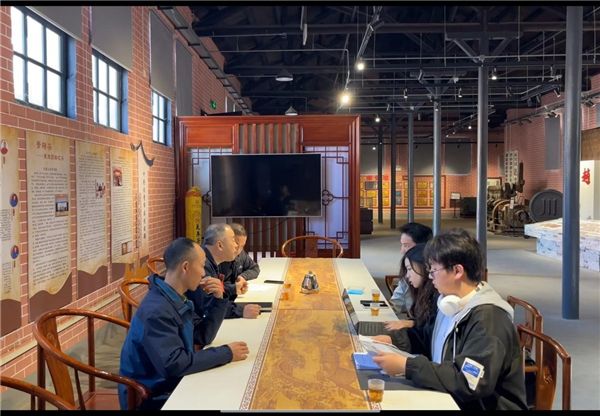 指导老师马秋芬带领实践团志愿者与赵李桥茶厂紧压茶研究所所长陈军海一行共同探讨“涛声茗响”暑期社会实践新模式与社会实践基地的孕育发展,旨在以校企合作的新形式,将高等学校学科优势与乡村振兴伟大使命相结合,利用地理标志的运用保护与品牌赋能为中华老字号企业寻找新时代新机遇,将赤壁青砖茶的招牌打响,走向全国、行销世界。